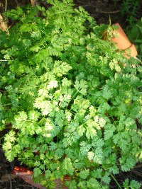 Hier einmal ausnahmsweise wieder ein einjähriges Kraut. Der Kerbel ist ebenfalls Bestandteil der "Fines herbes", so wie der Estragon. Die Blätter haben ein feines, anisähnliches Aroma.